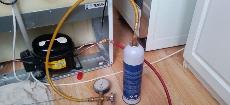 Заправка холодильника фреоном – обязательная процедура, которой заканчиваются все ремонтные работы, требующие вскрытия холодильного контура.